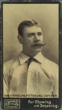 Thomas F. Kinslow (January 12, 1866 – February 22, 1901) was an American professional baseball player who played catcher in Major League Baseball (MLB) from 1886 until 1898. He played for eight teams in his ten-season career. Four of those seasons were with Brooklyn Bridegrooms of the National League (NL). During his playing days, his height was listed at 5-foot-10-inch (1.78 m), his weight as 160-pound (73 kg), he batted and threw right-handed, and had blonde hair.[1]