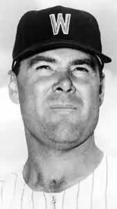 On December 14, 1960, he was drafted by the new Washington Senators from the Red Sox in the 1960 expansion draft. He wore uniform numbers 35 and 47 during his tenure with Washington.[5] After two relief appearances, he began to be used as a starter on April 26, holding the Red Sox to three hits and one unearned run over 7+1⁄3 innings and picking up the win in a 2–1 triumph.[39] He won the first shutout game in Senators history, a 4–0 victory over Boston on May 13.[40] The only hit he allowed in the game was a double to Vic Wertz, the only baserunner for Boston.[41] Those were his only wins with Washington, however, and after he gave up seven runs in 3+1⁄3 innings of a 14–9 loss to Boston on June 16, he was moved to the bullpen.[39] In 15 games (10 starts) through June 29, he had a 2–6 record, a 4.61 ERA, 39 strikeouts, 40 walks, and 67 hits allowed in 80 innings pitched.[5] On that date, he was traded by the Senators to the Pittsburgh Pirates for Tom Cheney.[5]
