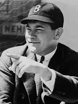 According to the Boston Herald, as owner of the Boston Red Sox, the team's integration policy was Yawkey's responsibility.[30] In 1945, Red Sox held a farce tryout chiefly designed to assuage the desegregationist sensibilities of powerful Boston City Councilman Isadore H. Y. Muchnick.[31] Jackie Robinson, who would later play for the Brooklyn Dodgers, was subjected to racial epithets by management[32] and left the tryout humiliated.[33]