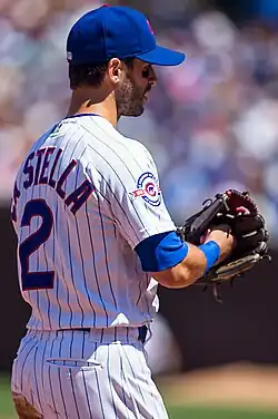 On November 16, 2014, the Braves traded La Stella, along with an international signing bonus slot, to the Chicago Cubs for Arodys Vizcaíno and three international signing bonus slots.[16][17] La Stella made the Cubs' Opening Day roster, but only played in two games before straining his right oblique on April 10, 2015. While rehabilitating at the minor league level with the Tennessee Smokies, La Stella suffered another oblique strain.[18] He came off the disabled list in August, and was sent to the Iowa Cubs of the Class AAA Pacific Coast League.[19] On August 24, he was recalled from Iowa and rejoined the major league club.[20] In limited time with Chicago, La Stella was used mainly as a pinch hitter, a role in which he excelled.[21] To increase his versatility, La Stella began playing third base during the regular season.[22] In 33 games,[23] La Stella hit .269/.324/.403,[24] and started at third base during the National League Wild Card Game against the Pittsburgh Pirates.[25]