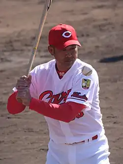 ![]() Tamaki with the Hiroshima Toyo Carp | |