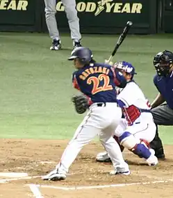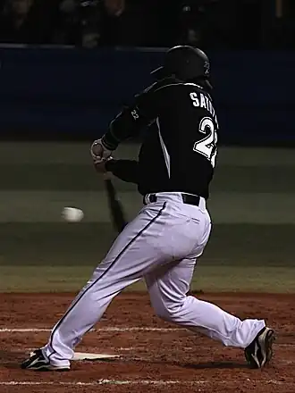 Tomoya Satozaki (里崎 智也, Satozaki Tomoya; born May 20, 1976, in Naruto, Tokushima, Japan) is a former Japanese professional baseball player. He played his entire career with the Chiba Lotte Marines in Japan's Nippon Professional Baseball. He played for Japan in the 2006 World Baseball Classic, and made the 2006 All-World Baseball Classic team.