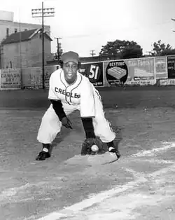 Stone talked her way onto the roster of the San Francisco Sea Lions by spring of 1949.[22] The 1946 failure of the short-lived West Coast Negro Baseball Association,[22] of which the Sea Lions had been a member, inspired owners Hal King and Harold Morris[23][20] to take a chance on Stone's argument that she would draw crowds. She batted in two runs in her first time up. At the time, the Sea Lions were barnstorming around the country, so the work was hard.[20] Stone soon became discontented with the owner of the Sea Lions after she discovered she was paid less than her male teammates.[20] Stone joined the New Orleans Creoles (1949–1952).