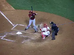 Clark slumped badly thereafter, however, as in his next 18 at-bats he only managed to eke out a single. As of May 6 he was batting .179, and had struck out in more than half his at bats.[17] That day Clark was placed on the 15-day disabled list for a lingering wrist ligament injury, and Josh Whitesell, who was hitting .356 for the Reno Aces with a .477 on-base percentage, was called up to the Diamondbacks to take his place.[18][19][20] Clark suffered the injury during spring training, and re-aggravated it in late April, leaving him unable to swing comfortably from the left side. It was anticipated that the injury could require more than 15 days to heal.[21]