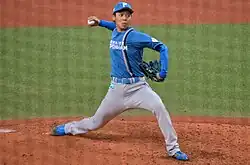 Toshihiro Sugiura (杉浦 稔大, Sugiura Toshihiro; born February 25, 1992 in Obihiro, Hokkaido, Japan) is a professional Japanese baseball player who currently pitches for the Hokkaido Nippon-Ham Fighters.