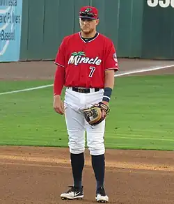 Blankenhorn spent 2018 with the Fort Myers Miracle. In June, he was named a Florida State League All-Star and won the Home Run Derby with 31 home runs.[7] In 124 games with Fort Myers, he hit .231 with 11 home runs and 57 RBIs.[8] He returned to Fort Myers to begin the 2019 season[9] before being promoted to the Pensacola Blue Wahoos with whom he was named to the Southern League All-Star Game.[10] Over 108 games between the two clubs, he slashed .277/.321/.466 with 19 home runs and 54 RBIs. Blankenhorn was named the second baseman of the year in the Southern League at the conclusion of the season.