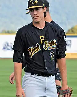 After his junior year, he was drafted by the Pittsburgh Pirates in the 13th round of the 2017 Major League Baseball draft.[8] He signed and made his professional debut for the West Virginia Black Bears of the Low–A New York-Penn League,[9] where he was named an All-Star.[10] He finished the season batting .269 with seven home runs and 37 RBIs in 53 games.