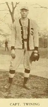 After having graduated from Swarthmore in 1915, Twining began his professional baseball career with a team in Chester, Pennsylvania.[10] He also played for a team in Media, Pennsylvania, that year and for the Salisbury team of the independent Peninsula League.[11][12] With Salisbury, he was the starting pitcher in an exhibition win over the Connie Mack-led Philadelphia Athletics.[12][13]