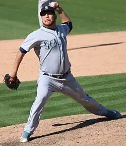 On June 3, 2015, the Diamondbacks traded Nuño and Mark Trumbo to the Seattle Mariners for catcher Welington Castillo, reliever Dominic Leone and prospects Gabby Guerrero and Jack Reinheimer.[22] Nuño pitched to a 1–4 record with a 5.08 ERA in ten games started, and a 1.91 ERA in 25 appearances as a relief pitcher.[23] When he won a start on September 9, it was his first major league victory since June 27, 2014, and he broke a string of 44 appearances and 20 starts without a win; his 20-start winless streak had been tied for the longest active streak without a win in the major league's with Atlanta's Shelby Miller.[24]