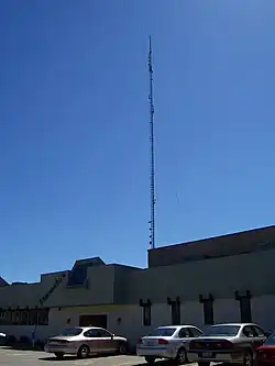 Storer renovated WXEL's Euclid Avenue studios to house WJW radio as well as the television station.[77] A colonial design was chosen as it contrasted significantly from the buildings that surrounded it. The interior evoked 1770-era Georgian architecture, accommodating up to 40 different studios for both radio and television. A cupola added to the top drew comparison to Independence Hall, and a greenhouse was built facing the general manager's office.[78] The grand opening for the facility coincided with WXEL's renaming to WJW-TV on April 15, 1956;[79] the call sign change and building's dedication was telecast live, including a flyover by the Ohio Air National Guard and Cleveland mayor Anthony Celebrezze proclaiming "WJW Week" for the city.[80] Mayer intended to reuse the WXEL call sign for a planned UHF station in Boston.[28][c] The colonial architecture and façade would soon be implemented at other Storer stations, including WGBS in Miami[82] and WJBK-TV's studio building in Detroit.[83]