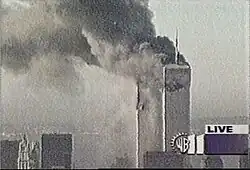 On September 11, 2001, the transmitter facilities of WPIX and several other New York City area television and radio stations were destroyed when two hijacked airplanes crashed into the World Trade Center; both of the complex's main towers collapsed due to fires caused by the impact. WPIX lead engineer Steven A. Jacobson[21] was among those who were killed in the terrorist attack.[22] WPIX's satellite feed froze on the last video frame received from the WTC mast, a replay of the North Tower burning and the start of the impact of the South Tower; the image remained on-screen for much of the day until WPIX was able to set up alternate transmission facilities (the microwave relay for WPIX's satellite feed was also located at the World Trade Center). WPIX also broadcast on W64AA in the interim.[23] Since then, WPIX has transmitted its signal from the Empire State Building.[24]