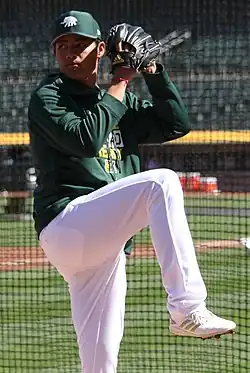 ![]() Wang pitching for the Oakland Athletics in 2019 | |