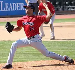 In 2015 Jerez joined the Low–A Greenville Drive, where he went 3–1 with a 2.06 ERA and three saves, striking out 43 in 39⅓ innings of work. He then gained a promotion to High A Salem Red Sox and was more dominant, posting a 1–0 record with a 0.73 ERA and 12 strikeouts in 12 innings.[10] The Portland Sea Dogs would be the fifth stop in just a year and a half for Jerez, as he collected scoreless outings in 13 of 22 appearances since his Double-A debut on June 24, 2015.[11] Overall, he went 5–3 with a 2.54 ERA and four saves in a career-high 41 games during the three stints.[10]