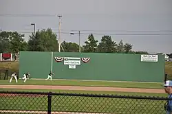 After the 2009 season, Silkworms owner Ed Slegeski sold the franchise to a team of partners led by Jonathan and Noah Crane.[1] The Muskrats name was selected from a Name-the-Team contest.[2] In February 2012, the Laconia Parks and Recreation Commission approved a plan of the Muskrats to sell alcohol in a pavilion beyond left field at Robbie Mills Field that would be separate from general seating.[3] On April 30, the club announced the construction of a manual scoreboard patterned after the Green Monster at Fenway Park in Boston at the left-field fence.[4] The wall, 17 feet (5.2 m) tall and 88 feet (27 m) in length, was built during the 2012 season.