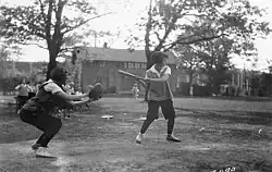 While Murphy was perhaps the best-known woman playing for an all-male team in the 1920s, there was at least one other woman athlete whose abilities included playing baseball. Philadelphia's Betty Schenkel not only played baseball with the boys during high school, but she was said to be adept in other sports, including basketball, soccer, and cycling.[27]