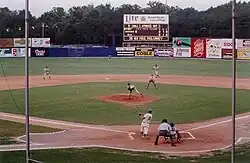 The ballpark's age and its cramped quarters began to be a notable problem for the minor league club once the minor league explosion of the late 1980s and early 1990s was under way. Various cosmetic renovations were made, such as building a kind of stadium club ("The Grandstand") in the left field corner seats, as well as a fairly large concession stand outside the third base stands. The stadium also received many seats from Philadelphia's old Shibe Park after Shibe's demolition.[5]