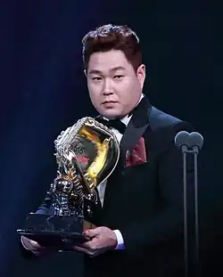 ![]() Yang with his 2015 Golden Glove Award | |||||||||||||||