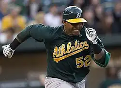 After interest from numerous Major League teams, Céspedes agreed to a four-year, $36 million contract with the Oakland Athletics on February 13, 2012, with the deal becoming official the following month.[19] Céspedes began the 2012 season for the Athletics at his usual position of center field, but was later moved to left field upon the return of veteran center fielder Coco Crisp.