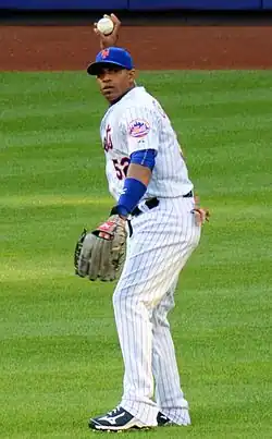 On July 31, 2015, Céspedes was traded to the New York Mets for minor league pitchers Michael Fulmer and Luis Cessa. On August 21, Céspedes went 5-for-6 against the Colorado Rockies, hitting three home runs in a game for the first time. Céspedes finished a triple shy of the cycle.[33] It was ranked the best offensive game of the season by ESPN.com.[34] In his first 41 games with the Mets, Céspedes exploded, posting a .309 batting average, 17 home runs, 42 RBIs, and a .691 slugging percentage. His offensive explosion helped the Mets jump up to a 912 game lead over the Washington Nationals in the National League East as of September 14. Because of his efforts, Céspedes was awarded the NL Player of the Week Award for September 7–13. He batted .345, hit four home runs, scored six runs, and drove in 12 runs while posting a 1.263 OPS. Across 57 games for the Mets in 2015, Céspedes batted .287/.337/.604 with 17 home runs and 44 RBI.