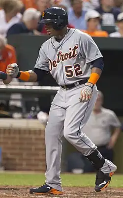 On December 11, 2014, the Red Sox traded Céspedes along with Alex Wilson and Gabe Speier to the Detroit Tigers for Rick Porcello.[29] Céspedes played his first game with the Tigers during opening day against the Minnesota Twins on April 6, 2015, where he robbed Kurt Suzuki of a home run, leading to a 4–0 victory for the Tigers.[30] Through June 13, Céspedes was hitting .308 with nine home runs and 33 runs batted in. He was not selected as an All Star but was put in as a player on the All-Star Final Vote. Therefore, he could not compete in the Home Run Derby after winning the two previous years.[31]