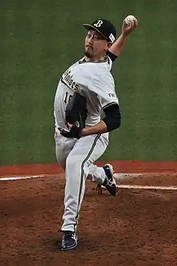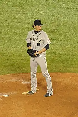 The Orix Buffaloes selected him with the first overall selection in the 2005 Nippon Professional Baseball draft.[2] Hirano made his professional debut in 2006, pitching 172+1⁄3 innings of 3.81 ERA ball. The next year, Hirano logged an 8-13 record and 3.72 ERA in 27 appearances with the team. In 2008, Hirano did not make an appearance with the major club, pitching in 6 games for Orix's minor league club. He returned to Orix in 2009, pitching to a 3–12 record and 4.72 ERA in 20 appearances. In 2010, Hirano improved on his performance from the previous year, recording a stellar 7–2 record and 1.67 ERA with 101 strikeouts in 80+2⁄3 innings of work. He continued his success in 2011, logging a 6–2 record and 1.94 ERA in 83+2⁄3 innings of work. He also won NPB’s best middle reliever award in 2011.[3] His fine work continued in 2012, with an ERA of 2.15 paired with a record of 7–4 in 70 appearances. Hirano carried his success into 2013 as well, pitching to a 1.87 ERA with 71 strikeouts in 62+2⁄3 innings pitched for Orix. He was not as successful in 2014, but still had a solid year, registering a 3.43 ERA with 70 strikeouts in 60+1⁄3 innings pitched. Hirano also led the Pacific League in 2014 in saves, with 40. In 2015, Hirano posted a 3.82 ERA with 43 strikeouts in 33 innings across 33 appearances for the team. In 2016, Hirano had a strong year, posting a 4–4 record and 1.92 ERA in 58 appearances for Orix.[4] During the 2017 season, his last before signing with a Major League Baseball team, the right-handed Hirano saved 29 games and pitched to a 2.67 ERA with 47 strikeouts in 57+1⁄3 innings.[5]