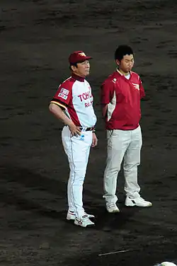 ![]() Sato with the Tohoku Rakuten Golden Eagles | |