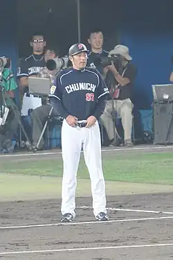 Yoshinori Ueda (上田 佳範, Ueda Yoshinori; born November 18, 1973 in Matsumoto, Nagano, Japan) is a former professional Japanese baseball player.