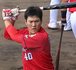Yoshitaka Isomura (磯村 嘉孝, Isomura Yoshitaka; born November 1, 1992 in Toyota, Aichi, Japan) is a professional Japanese baseball player. He plays catcher for the Hiroshima Toyo Carp.[1][2]