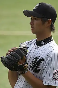 Yuki Karakawa (唐川 侑己, Karakawa Yūki; born July 5, 1989 in Narita, Chiba, Japan) is a Japanese Nippon Professional Baseball pitcher with the Chiba Lotte Marines in Japan's Pacific League.