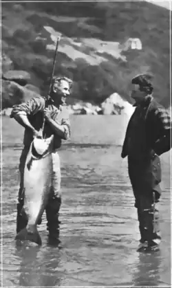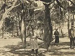 Grey also helped establish deep-sea sport fishing in New South Wales, Australia, particularly in Bermagui, which is famous for marlin fishing. Patron of the Bermagui Sport Fishing Association for 1936 and 1937, Grey set a number of world records,[72][73][74] and wrote of his experiences in his book An American Angler in Australia.[75][76]