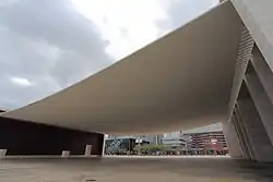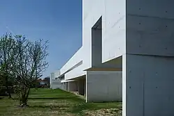 Siza's Iberê Camargo Foundation in Porto Alegre, his first project built in Brazilian territory, was honoured by the Venice Architecture Biennale with the Golden Lion award in 2002.[18] In 2007 the Brazilian Government awarded him the Cultural Merit Order Medal. More recently he was awarded the RIBA's 2009 Royal Gold Medal[19] and the International Union of Architects' 2011 Gold Medal.[20] Siza was awarded by the Venice Architecture Biennale (13th Edition) with the Golden Lion for lifetime achievement (2012). In 2019 was awarded the National Architecture Award of Spain, being the first non-Spanish architect to receive it in its 90 years of history.[21]