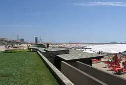 Among Siza's earliest works to gain public attention was a public pool complex (named Piscinas de Marés) he created in the 1960s for Leça da Palmeira, a fishing town and summer resort north of Porto. Completed in 1966, both of the two swimming pools (one for children, the other for adults) as well as the building with changing rooms and a cafe are set into the natural rock formation on the site with unobstructed views of the sea.[4] In 1977, following the revolution in Portugal, the city government of Évora commissioned Siza to plan a housing project in the rural outskirts of the town. It was to be one of several that he would do for SAAL (Serviço de Apoio Ambulatório Local), the national housing association, consisting of 1,200 low-cost, housing units, some one-story and some two-story row houses, all with courtyards.[5] He was also a member of the team which reconstructed Chiado, the historic center of Lisbon destroyed by a fire in 1988.