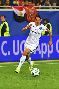 Ángel Fabián Di María (Spanish pronunciation: [ˈaŋxel faˈβjan di maˈɾia]; born 14 February 1988) is an Argentine professional footballer who plays as a right winger for Argentine Primera División club Rosario Central. Widely regarded as one of the greatest Argentine players of all time, Di María is known for his dribbling ability, playmaking, rapid pace and agility.[2][3] He is the all-time Argentine top assist provider in the UEFA Champions League (41), ranking second overall.[4]