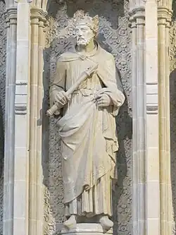 Æthelberht was later regarded as a saint for his role in establishing Christianity among the Anglo-Saxons. His feast day was originally 24 February but was changed to 25 February.[58] In the 2004 edition of the Roman Martyrology, he is listed under his date of death, 24 February, with the citation: 'King of Kent, converted by St Augustine, bishop, the first leader of the English people to do so'.[59] The Roman Catholic Archdiocese of Southwark, which contains Kent, commemorates him on 25 February.[60]