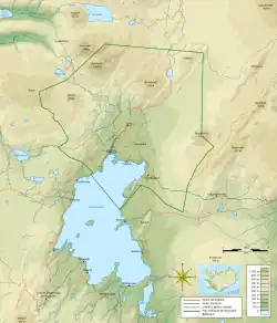 Þingvellir is situated on the northern shore of Þingvallavatn, the largest natural lake of Iceland. The river Öxará traverses the national park and forms a waterfall at the Almannagjá [ˈalˌmanːaˌcauː], called Öxarárfoss. On the lake's northern shore, the Silfra fissure is a popular diving and snorkelling tour location. [16]