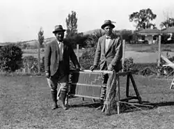 Throughout all this, Ngata also remained deeply involved in the affairs of his Ngāti Porou iwi, particularly as regards land development. He was instrumental in establishing the land incorporation scheme whereby unused Māori land with multiple owners was amalgamated under a farm manager—often Pākehā, who developed and ran the farm. In government he was able to arrange for the transfer of four blocks of farm land to Te Puea Herangi and her husband. He arranged grants and government loans to help her develop farms for Waikato. He fired the Pākehā farm manager and replaced him with Te Puea. He arranged a car for her so she could travel around her estates. In 1934, during the depression, the public, media and parliament became alarmed at the large sums of money being gifted to Te Puea and others. A royal commission was held and Ngata was found guilty of irregularities in expenditure and negligence in administration, but no major scandals were unearthed. His land projects up to 1934 had involved the expenditure of £500,000, most of which was recoverable. Ngata resigned in December 1934.[8] Ngata fought for higher living standards for the Māori people, and was very active during an economic depression in New Zealand in the Thirties, developing large farms which provided jobs and helped to restore the dignity of many Māori.[9]