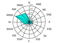 The Urfa region is characterized by a semi-arid Mediterranean climate.[7]: 192 Rainfall mostly comes in winter, when the temperature is mildest; summers are very hot and dry.[7]: 192 Annual mean precipitation is 458.1 mm.[7]: 192 The annual mean temperature is 18.5 °C.[7]: 192 The coldest month is January, which has an average temperature of 2.7 °C, while the hottest month is July, with an average temperature of 39 °C.[7]: 192 The dry season typically begins around April, peaks in intensity around July, and ends around October.[7]: 201 Wind typically blows from the northwest, with west-northwest winds being the strongest.[7]: 195