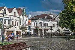 During the Holocaust in Slovakia, tens of thousands of Jews were deported from Žilina.[8] Žilina was captured on 30 April 1945 by Czechoslovak and Soviet troops of the 4th Ukrainian Front, after which it again became part of Czechoslovakia. After the war, the city continued its development with many new factories, schools, and housing projects being built. It was the seat of the Žilina Region from 1949 to 1960 and again since 1996.