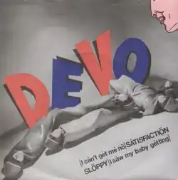 American new wave band Devo released their rendition of "(I Can't Get No) Satisfaction" as a single in 1977, initially in a self-produced version on their own label Booji Boy Records.[79] The song was re-recorded with Brian Eno as producer for their first album, and that version was also released as a single in 1978, this time by Warner Brothers Records, after it was played for Mick Jagger's approval.[80] The band filmed a video for the song that would later feature regularly on MTV, while a performance on SNL gave them a national profile.[79] Decades after its release, Steve Huey of AllMusic would write that the cover version "reworks the original's alienation into a spastic freak-out that's nearly unrecognizable".[81] This version of the song was featured prominently in the 1995 Martin Scorsese epic crime film Casino. Devo's version also featured in Netflix's series Sex Education.