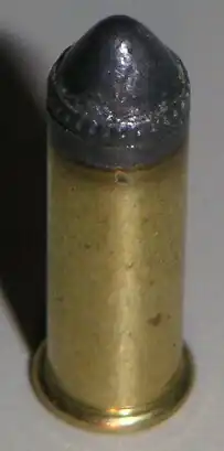 American cartridge manufacturer J. Stevens Arms & Tool Company introduced the .22 long rifle cartridge in 1887.[6][7][8][9]The round owes its origin to the .22 BB Cap of 1845 and the .22 Short of 1857. It combined the case of the .22 long of 1871 with a 40-grain (2.6 g) bullet, giving it a longer overall length, a higher muzzle velocity and superior performance as a hunting and target round, rendering the .22 extra long cartridges obsolete. The .22 LR uses a heeled bullet, which means that the bullet is the same diameter as the case, and has a narrower "heel" portion that fits inside the case. It is one of the few cartridges that are accepted by a large variety of rifles and handguns.