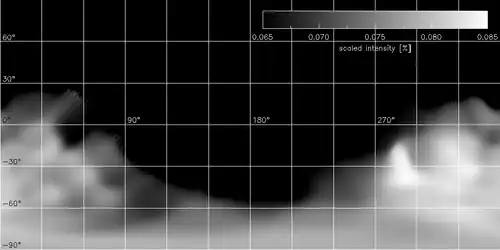 North pole right ascension | 319°±3°[6]: 136 | ||||||||