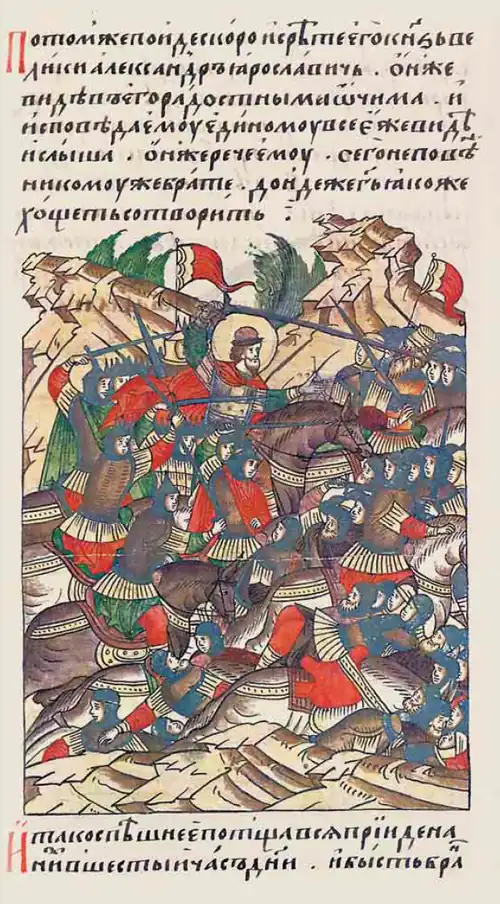 - July 15 – Battle of the Neva: A Swedish army under Bishop Thomas sails up the Gulf of Finland in their longboats. They proceed into the Neva River with the aim of seizing control over Lake Ladoga and from there, striking at the city of Novgorod. Prince Alexander rallies his druzhina comparable to the 'household' of western European countries, and decisively routs the Swedish forces, saving the Novgorod Republic from a full-scale enemy invasion from the North. As a result, Alexander wins his first military victory at the age of 19 and receives the title of 'Nevsky'.[1]