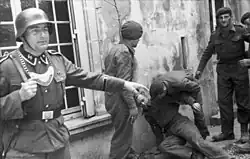 About 2,000 personnel were transferred from the LSSAH and in September 1943, the division had over 16,000 recruits on its roster, undergoing training in Beverloo Camp in Leopoldsburg, Belgium.[10] The indoctrination was often brutal; while in Allied captivity, an SS man from the division recalled: "In the Waffen-SS you couldn't do anything if an Unterfuhrer hit you during the training. The purpose of the training is to make you just as they are; it's pure sadism".