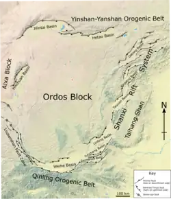 - ^ Shi, W.; Dong, S.; Hu, J. (2019). "Neotectonics around the Ordos Block, North China: A review and new insights". Earth-Science Reviews. 200 102969. doi:10.1016/j.earscirev.2019.102969. S2CID 210616833.