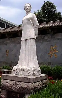 The Guangfuhui (Restoration Society) was also founded in 1904 in Shanghai, by Cai Yuanpei. Other notable members included Zhang Binglin and Tao Chengzhang.[11] Despite professing the anti-Qing cause, the Guangfuhui was highly critical of Sun Yat-sen. One of the most famous female revolutionaries was Qiu Jin, who fought for women's rights and was also from the Guangfuhui.[12]