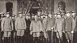 In July 1907, several members of Tongmenghui in Tokyo advocated a revolution in the area of the Yangtze. Liu Quiyi (劉揆一), Jiao Dafeng (焦達峰), Zhang Boxiang (張伯祥) and Sun Wu (孫武) established the Gongjinhui (共進會).[18][19] In January 1911, the revolutionary group Zhengwu Xueshe (振武學社) was renamed as Wenxueshe (Literary Society) (文學社).[20] Jiang Yiwu (蔣翊武) was chosen as the leader.[21] Both organizations would play a major role during the Wuchang Uprising.