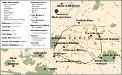 | Stade de Colombes | Athletics, Cycling (road), Equestrian, Fencing, Football (final), Gymnastics, Modern pentathlon (fencing, running), Rugby union, Tennis | 60,000 | [23] |
