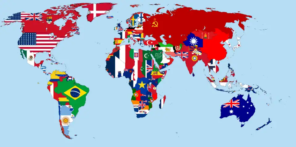 World War II (September 1, 1939 – September 2, 1945) – global war centered in Europe and the Pacific but involving the majority of the world's countries, including all of the major powers such as Germany, Russia, America, Italy, Japan, France and the United Kingdom.