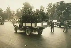 Soldiers mobilizing during the 1930 Argentine coup.Chinese Civil War (1927–1949) – The ruling Kuomintang and the rebel Chinese Communist Party fought a civil war for control of China. The Communists consolidated territory in the early 1930s and proclaimed a short-lived Chinese Soviet Republic that collapsed upon Kuomintang attacks, forcing a mass retreat known as the Long March. The Kuomintang and Communists attempted to put away their differences after 1937 to fight the Japanese invasion of China, but intermittent clashes continued through the remainder of the 1930s. Even with some clashes they all fought the Japanese.