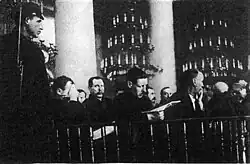 • January 30 – The Moscow Trial initiated on January 23 is concluded. Thirteen of the defendants are sentenced to death (including Georgy Pyatakov, Nikolay Muralov and Leonid Serebryakov), while the rest, including Karl Radek and Grigory Sokolnikov are sent to labor camps and later murdered. They were initially spared for implicating others, including Rykov, Bukharin and Tukhachevsky, setting the stage for further trials[3]